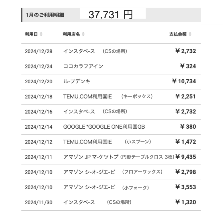 2024年 小口 明細