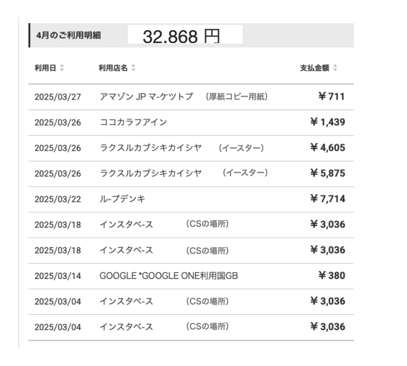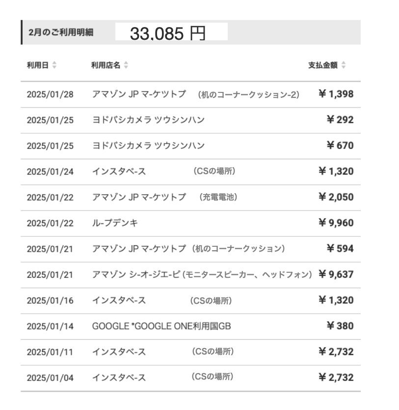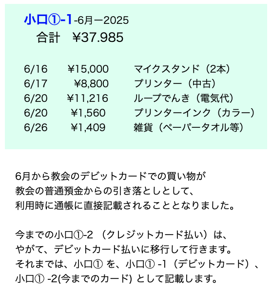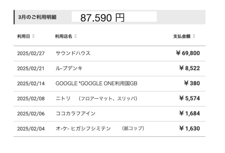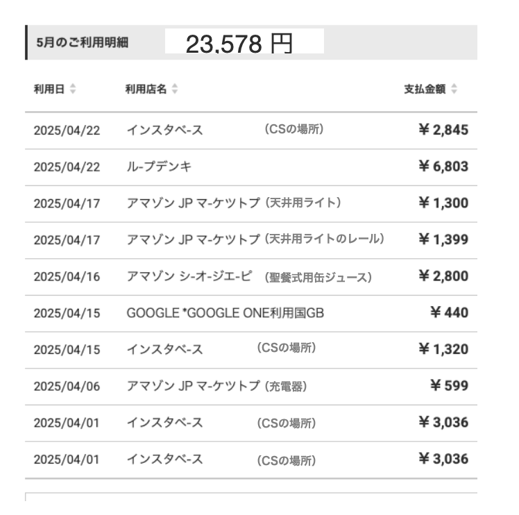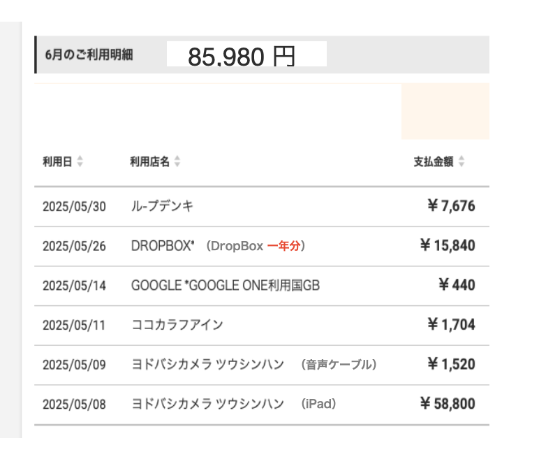 <注> 以下の『6月のご利用明細』は5月の出費分を6/16付で出金しています。