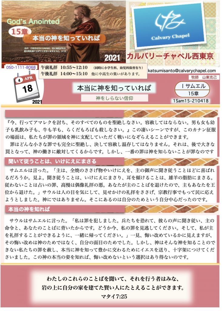 午後礼拝の録画収録もあります。 ← 午前のは口と声がずれてましたね。 <(_ _)>