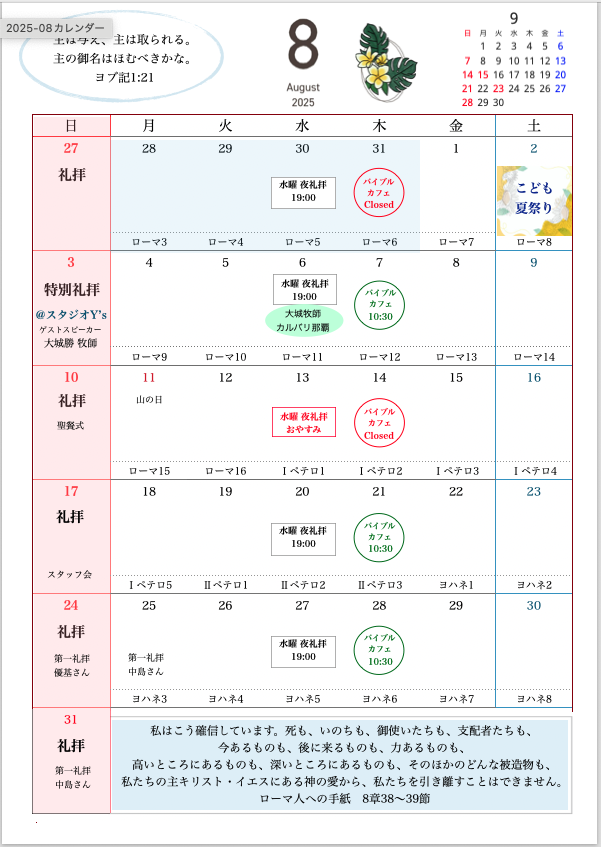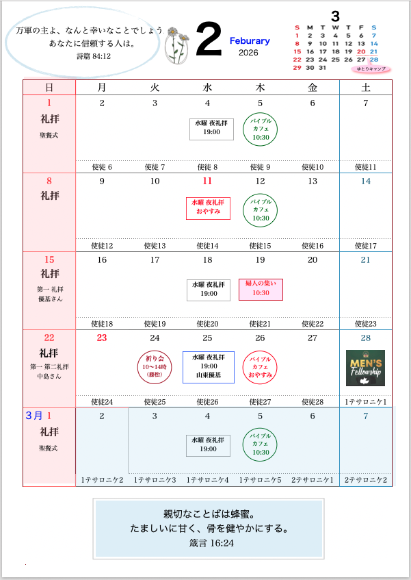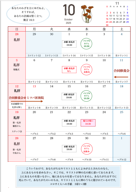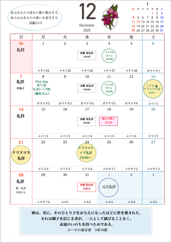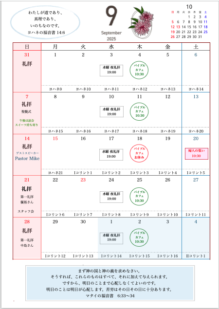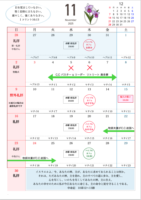 今週の週報 お知らせ 等https://www.calvarywesttokyo.com/?p=14112